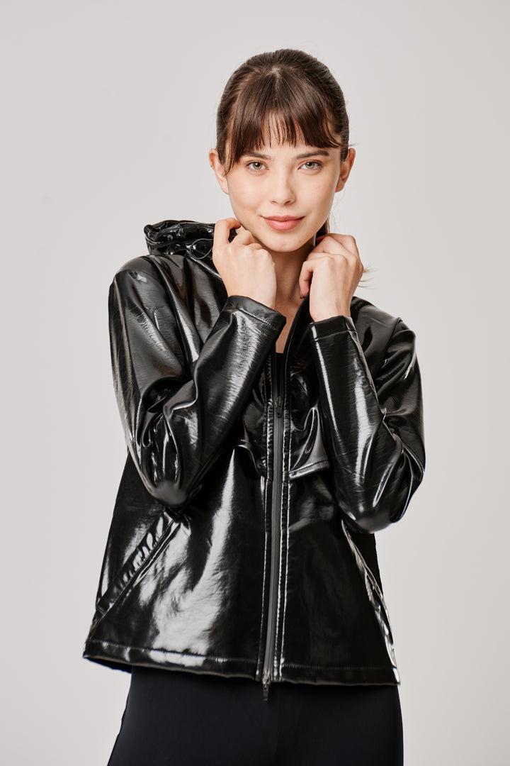 Giacca lucida dal taglio sportivo ma con rifiniture deluxe e cappuccio a scomparsa nel collo che la rendono uncapo d'abbigliamento contemporaneo e sofisticato per ogni occasione.